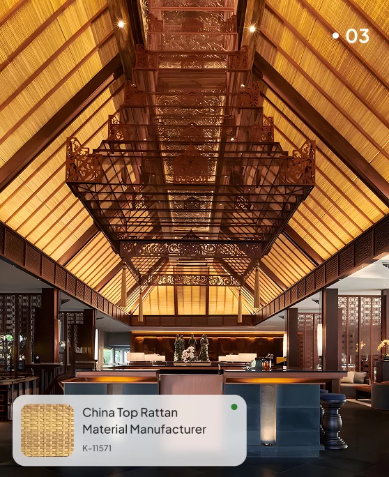 Ideal for projects in luxury Hotels, Resorts, Restaurants, Boutique, Residential and Public Facilities. Our synthetic rattan sheet fuses sophisticated design and professional performance. Creates impressive atmospheres in ceilings, walls, façade cladding, acoustic partitions in restaurants or architectural details in public areas.