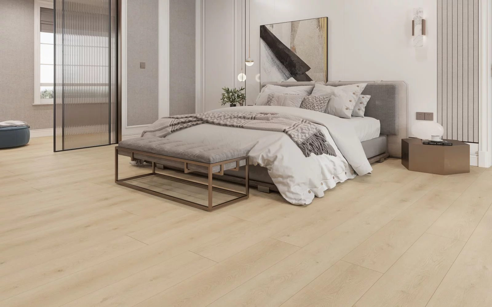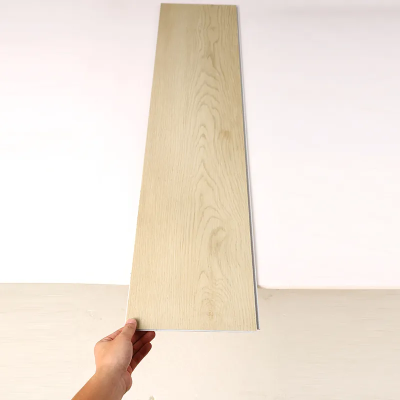 This SPC flooring is designed with irregular wood-like grains and patterns, giving it a look close to real wood.